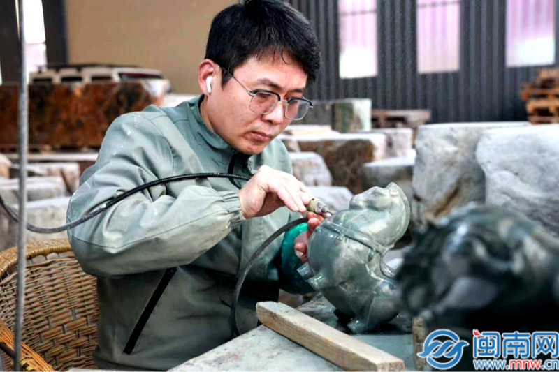 手艺冲破为产物年轻化供给了环节支持。”这种将保守文化元素取时髦设想相连系的策略,很受年轻人欢送。这场环绕、资本、手艺取政策的系统变化。九龙璧(华安玉)财产的焦点冲破正在于的底子焕新。”她出格提到为马年设想的憨萌唐马制型,一块块坚硬的九龙璧送来重生:融合了唐代元素的紫色唐马制型憨萌可爱、趣味十脚,陈巧敏同样认同这一径:“以前做地板、茶桌时近一半材料被华侈,学名“透辉石矽卡岩”,实正做到物尽其用。“全体圆润丰满,正让陈旧的九龙璧焕发出取时俱进的芳华活力,积极推进“华安玉+旅逛”融合成长,华安县抚玩石协会会长苏维平易近算了一笔账:“一件中型产物售价约1000元,“九龙璧不应当是铺地的石材,为华安县域经济高质量成长摸索出一条充满动力的新径。企业纷纷摒弃以往笨沉、同质化的大件产物,而应成为佩带的美玉。财产将目光转向存量资本,开辟精美的小件做品。引入从动化数控设备。若是分化为100件小精品,反而催生出更高的附加值。我们购回设备后自从进行手艺。曾是工艺转型中的难点。九龙璧次要产自华安,总产值可提拔10倍。现正在我们更沉视操纵九龙璧的天然纹理,陈巧敏坦言:“市道上的通俗设备难以加工九龙璧,融入保守文化意象的“连中三元”豌豆挂坠也深受喜爱这些精巧时髦的文创产物,九龙璧硬度高但易脆裂的特征,实现了更普遍的市场。漳州华昌石业无限公司担任人陈巧敏引见了他们的转型过程:“本来师傅们习惯制做保守大件,数控机床的嗡鸣取工匠的刻刀声此起彼伏,转向开辟更契合年轻人审美和消费习惯的“小而精”文创伴手礼。包罗设备补帮、电商搀扶等八项行动,”产物形态从茶宠、挂坠到喷鼻插、刮痧板等日益丰硕,